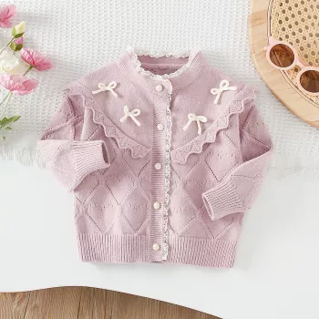 Autumn Winter Baby Girls Knit Cardigan with Lace and Bow