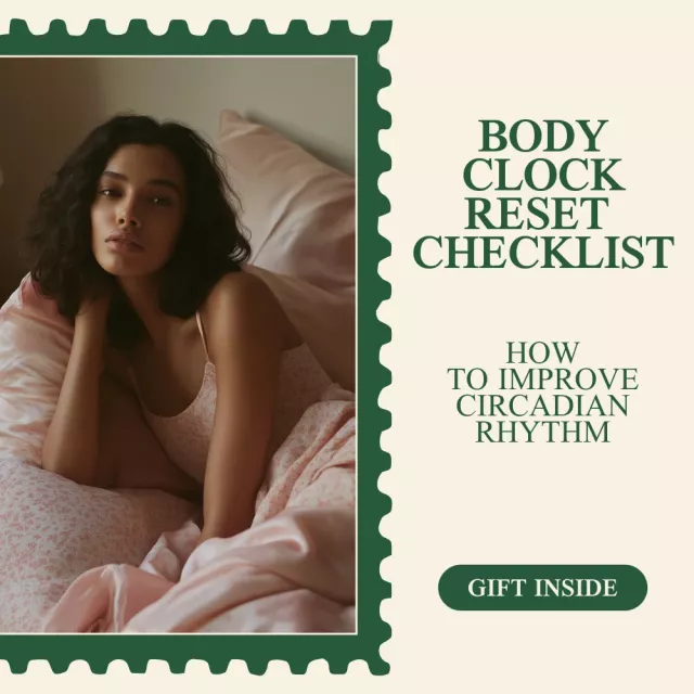 Ready to reset your body clock and experience better sleep? Download the Your Body Clock Reset Checklist today and start improving your circadian rhythm for more energy, better mornings, and restful nights. Your body will thank you!